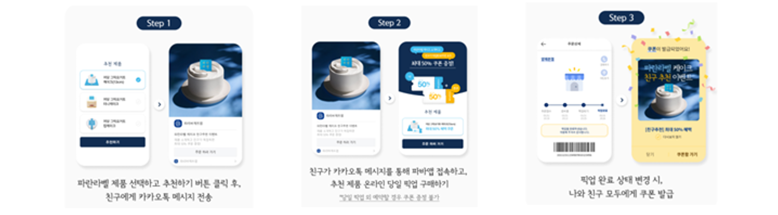 STEP02. 친구가 카카오톡 메시지를 통해 파바앱을 접속하고, 추천 제품 온라인 당일 픽업 구매하기