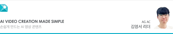 현재는 AI 영상의 완성도를 높이기 위한 고민이 많을 수밖에 없겠지만, 기술적 고민에만 매몰되어서는 안 됩니다. 지금부터 ‘좋은 영상 콘텐츠’를 만들기 위한 고민과 노력이 수반되어야 합니다. 그래야 기술 평준화의 시대가 도래하면, 자연스럽게 기술적 고민보다 기획적 고민으로 자연스럽게 무게 중심을 옮길 수 있습니다. 곧 다가올 미래에 사람들은 ‘잘 만든 AI 영상 콘텐츠’에는 큰 흥미를 느끼지 않을 것입니다.