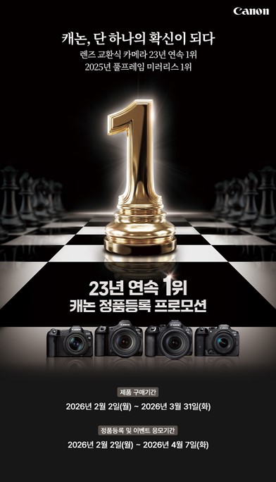 캐논이 해냈습니다! 전 세계&국내 렌즈 교환식 카메라 시장 23년 연속 점유율 1위 달성!