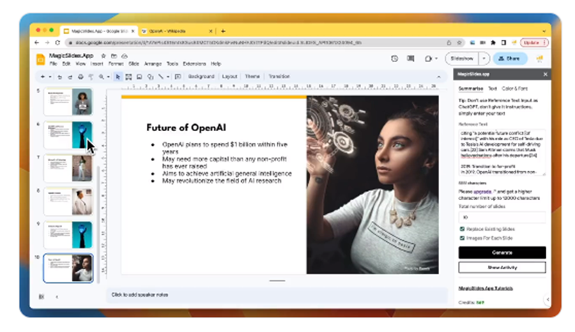 이 서비스는 비즈니스 프레젠테이션, 교육 자료, 학술 발표 등 다양한 목적에 적합하며, 전문가, 교육자, 학생 모두에게 적합합니다. Magic Slides는 프레젠테이션 제작 과정을 간소화하고 시간을 절약할 수 있게 해주며, 프레젠테이션의 전문성과 시각적 매력을 향상하는 데 도움을 줍니다.