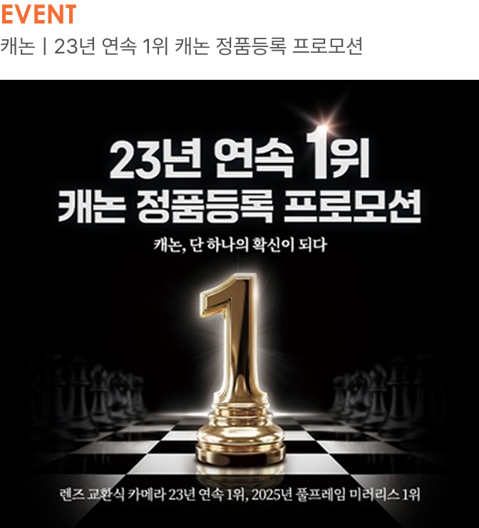 캐논이 해냈습니다! 전 세계&국내 렌즈 교환식 카메라 시장 23년 연속 점유율 1위 달성!