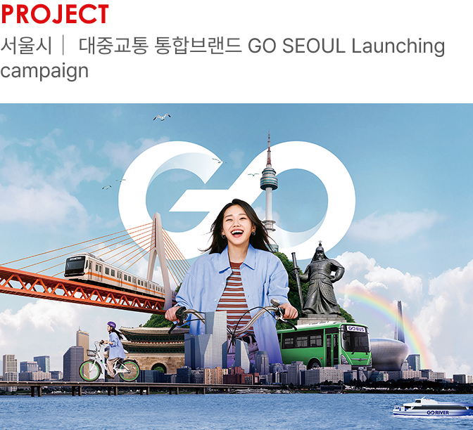 펜타브리드는 서울시의 「대중교통 통합브랜드 GO SEOUL Launching campign」 파트너로 함께 하였습니다. GO SEOUL은 버스·지하철·따릉이·한강버스 등 기후동행카드로 이용 가능한 교통수단을 통합한 서울특별시가 최초로 선보인 대중교통 통합 브랜드입니다.